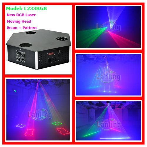 Model No. L233RGB / New style 3 head full color RGB aluminium stage laser light Description RGB THREE TUNNEL LASER SHOW SYSTEM Feature Three tunnel RGB laser, this laser has many kinds of trace effects, such as square, round, triangle, rhombus, triangle wave, square wave, crossed-shaped. Under DMX mode, it can be operated with tunnel selection, beam selection, patterns selection, X/Y movement, flash, dimmer, stream, rotation and zoom in/out. It will create very beautiful laser effect if many units are linked together in Master/slave. Beam laser can reflect the high lightness of laser effect. Scanning Micro-step motor scanning at big angle Laser Blue: 100mW 470nm DPSS laser Red: 200MW, 650nm DPSS laser Green: 50mW, 532nm DPSS Laser Mixed 350mW laser Play Mode DMX, Sound Active, AUTO, Master-Slave. DMX Control Channel: 12 channels Interface 3 pins XLR jack for DMX or Maser-Slave linking Power Supply 110V or 220V-250V, 50/60Hz, 30W Net Weight 4.5Kg Gross Weight 5.2Kg (inner box) Inner Box 930*264*176(0.043m³ )sup3; )up3; ) Outer Box 956*280*392(0.106m³ ), 2PCS/cartoncartoncarton Accessories Included: User's Manual Power Supply Cable (UK, USA, EURO, AUS, BRZ). Applicable Place DJs, Bands, Bars, Pubs, Clubs, KTV, Family party, etc. Customized OEM, ODM