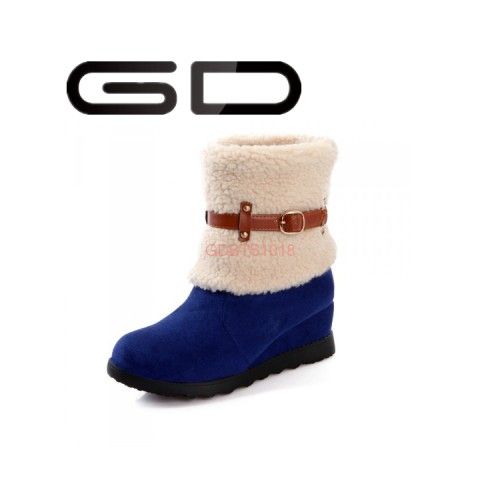 Gdshoe坡跟低跟棉织物暖冬靴