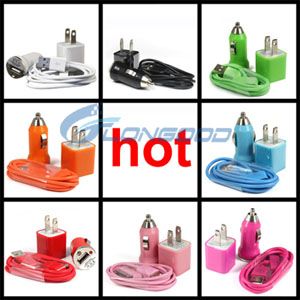 Colorful(3 in one) Car Charger+USB Data Cable +US Charger For iPod iPhone 4 4G 4S 3G 3GS