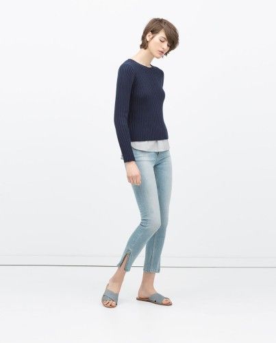 Wholesale Fashion Ladies Skinny Jeans With Zipped Hem