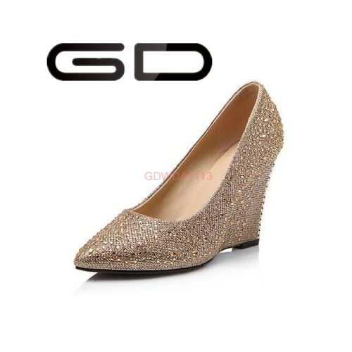 Gdshoe Ladies Elegant Wedges Glitter Working Shoes
