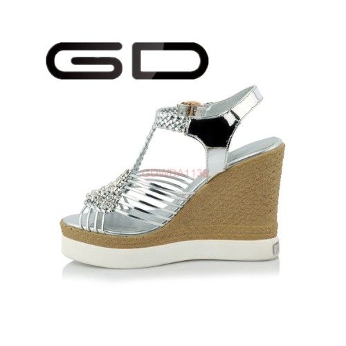 Gdshoe Silver Lace Shoes Leather Leather Sandals Wedges