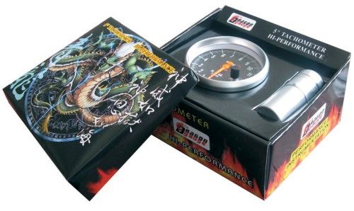 High performance 5' tachometer, black face and silver rim, with shift light. light.