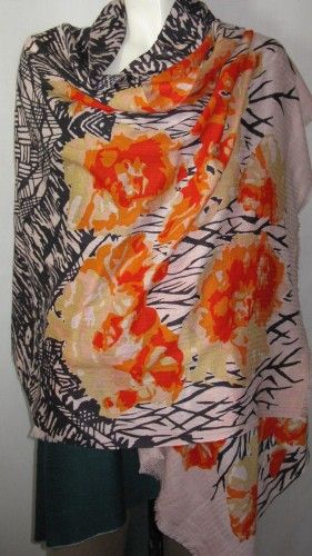 100% Wool Heringbone Shawl Print Na Orange