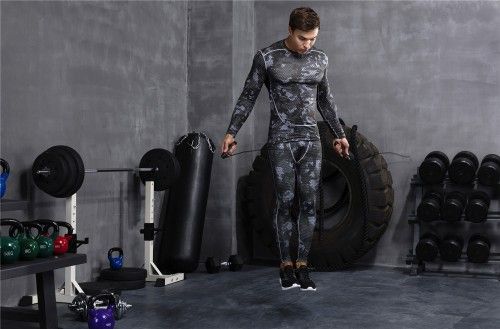 Men's tight sport top and pants made by 98%polyester 2%spandex with contrast speical coverstitching to let sideseam more stregthen and niceBreathable and comfortableAllover digital printingvery professional sport suit.500pcs moq,polybag packing.
