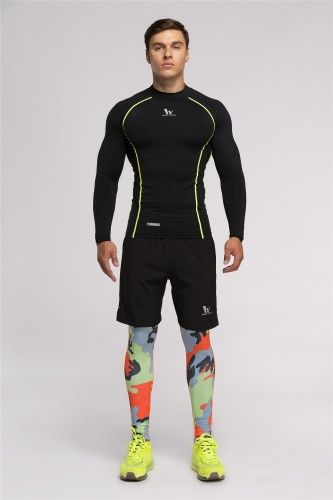 Men's tight sport top and pants made by 98%polyester 2%spandex with contrast speical coverstitching to let sideseam more stregthen and niceBreathable and comfortableWhole printed pattern pants waistband made by jacquard wide elasticShorts made by polyester microfibre with whole elastic waistbandmoq is 500pcs,sgs testing,polybag packing.