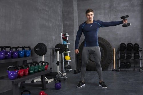 Men's tight sport top and pants made by 98%polyester 2%spandex with contrast speical coverstitching to let sideseam more stregthen and niceBreathable and comfortablePants waistband made by jacquard wide elasticvery professional sportwear,sgs testing,polybag packing,500pcs moq.