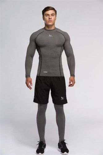 Men's tight sport 3pcs set, top and pants made by 98%polyester 2%spandex with contrast speical coverstitching to let sideseam more stregthen and niceBreathable and comfortable.