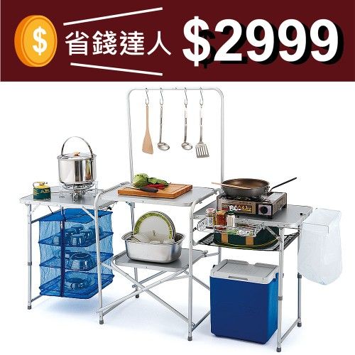 【省钱达人送料理剪刀】P12757 行动料理桌 + P12761 折合桌二用架 + 64350三层式餐厨篮︱行动厨房︱露营用品