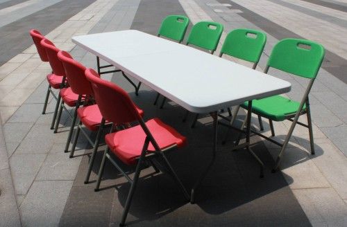2. Durable construction quality. 5cm thick granite white blow molded polyethelyne plastic table top, Steel tube legs,
