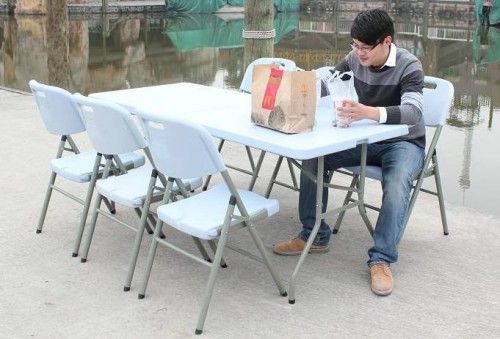 Product Specification Descripition * Item Name: 72''* 30'' Blow-molded plastic rectangle folding table * Item No: SY-183Z * Color: Blue * Material: Green environmental HDPE and Powder-coated steel tube * Unfolding Size: L 183*W76*H74cm(72''*30''*29'') * Folding Size: L 91.5*W76*H10cm * Steel Tube: 25*1.0mm power coated * Net Weight: 15.5Kg * Gross Weight: 16.5KG * Weight Capacity: 180Kg at least * Inner Package: 1 Piece/ Poly bag * Outpackage: 1 Piece/ Carton Feature: *Fashion design, green environmental and recycled material HDPE, very popular in home and abroad. *Durable construction quality. 5cm thick granite white blow molded polyethelyne plastic table top *Lighteweight, easy to move and store. *Water proof, resist acid, alkali and high temperature. Very long service life for at least 5 years. *Can apply to many field for indoor, outdoor, commercial and entertainment use, such as home, office, restaurant, hotel, church, party, wedding and so on. Terms of Transaction *MOQ: 500 Sets *Lead Time: 10-15Days *Terms of Delivery: FOB Shanghai/ Ningbo; CIF *Terms of Payment: TT; L/C at Sight *Inspection: Full Inspection and Random Inspection *Packing: Each Set with One Poly Bag inside and One Carton Outside Advantage *OEM Is Available *Great Production Ability: 500 Sets Each Day *Professional Design Team, Well Trained workers, Energetic Trader *Full Line Workshops with High-Tech Machines *Plenty Color Can be Chosed *Good service