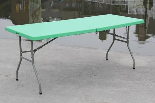 Product Specification Descripition * Item Name: 72''* 30'' Blow-molded plastic rectangle folding table * Item No: SY-183Z * Color: Green * Material: Green environmental HDPE and Powder-coated steel tube * Unfolding Size: L 183*W76*H74cm(72''*30''*29'') * Folding Size: L 91.5*W76*H10cm * Steel Tube: 25*1.0mm power coated * Net Weight: 15.5Kg * Gross Weight: 16.5KG * Weight Capacity: 180Kg at least * Inner Package: 1 Piece/ Poly bag * Outpackage: 1 Piece/ Carton Feature: *Fashion design, green environmental and recycled material HDPE, very popular in home and abroad. *Durable construction quality. 5cm thick granite white blow molded polyethelyne plastic table top *Lighteweight, easy to move and store. *Water proof, resist acid, alkali and high temperature. Very long service life for at least 5 years. *Can apply to many field for indoor, outdoor, commercial and entertainment use, such as home, office, restaurant, hotel, church, party, wedding and so on. Terms of Transaction *MOQ: 500 Sets *Lead Time: 10-15Days *Terms of Delivery: FOB Shanghai/ Ningbo; CIF *Terms of Payment: TT; L/C at Sight *Inspection: Full Inspection and Random Inspection *Packing: Each Set with One Poly Bag inside and One Carton Outside Advantage *OEM Is Available *Great Production Ability: 500 Sets Each Day *Professional Design Team, Well Trained workers, Energetic Trader *Full Line Workshops with High-Tech Machines *Plenty Color Can be Chosed *Good service