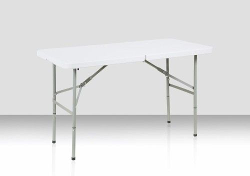 SY-122Z folding table Features: 1. Color: Granite white or as per customers' request 2. Unfolding size: 122*61*74CM 3. Folding size: 61*61*10cm 4. Material: HDPE & Power-coated Steel tubel tube tube 5. Net weight: 10kgs Gross weight: 11kgs 6. Holding ability: 180kgs 7. Inner Package: 1 Piece/ Poly bag 8. Out package: 1 Piece/ Corrugated cardboard 9. Steel Tube: 25 *1.0mm 10. Finish Powder-Coated Advantages: 1. Good design and Lightweight, easy to move and store 2. Resist acid, alkali and high temperature 3. The material is HDPE and powder-coated clad steel tube, substantial and eco-friendly. 4. The use time is at least 5 years, low prices fine wares. 5. Many folding tables can fix together, Can apply to many field for indoor, outdoor, commercial and entertainment use, such as home, office, restaurant, hotel, church, party, wedding and so on.