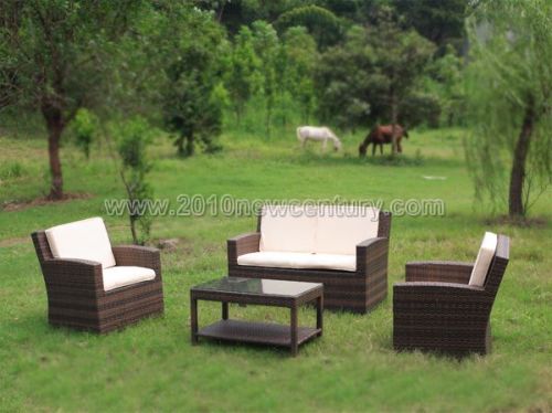 Outdoor sofa, Garden Sofa, patio sofa, rattan sofa, outdoor sofa, leisure sofa, wicker sofa, sofa bed, sofa furniture(NC6101) Specifications 2011 Outdoor Furniture: 1. PE rattan+Aluminum frame 2. Waterproof Cushion 3. OEM/ODM are welcome 4. Rattan Furniture Manufacturer 2011 Rattan sofa Material: 1)Frame: Top grade 1.2mm aluminum frame with powder-coated; Aluminium Frame: Thickness-1.2mm, diameter 25mm and 19mm and 16mm, The diameter depends on the design. 2)Rattan: SGS tested Rattan UV resistant; -- Flat rattan: Width of flat rattan: Normally 6mm, 7mm or 8mm; -- Round rattan: Diameter is between 1.5 mm to 2.5mm to 3.0mm. 3)Cushion: 100% polyester, water-proof, colours are optional; Thickness of cushion: --Dining chair: Normally is 5 cm to 8cm; --Sofa/lounge chair/Sun bed: Normally is 8 cm to 15 cm. 4)Table top: 5~12mm tempered glass, safe and strong. Sofa Feature: 1. UV Resistant, wateproof and durable; 2.100% practised handcraft weave; 3. Multiple colors/size optional and perfect match suggestion offered; 4. PE rattan material manufacture, sterling color could be customed; 5. Excellent technical with professional engineering, comfortable and healthy; 6. High quality, Nice the global fashion style suit able for indoor and outdoor; 7. OEM orders are welcome; 8. Fast delivery on flexible trade terms with reasonable price