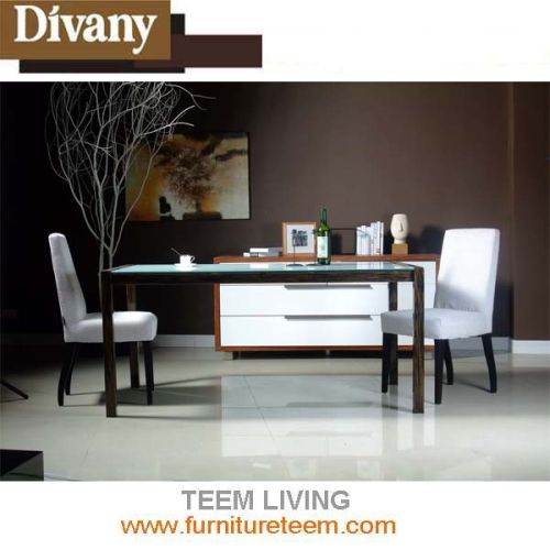 Model No.: DIVANY 2014 Modern Home Furniture Dining Room Solid Wood MDF Dining Table with Glass (TL-D0101)