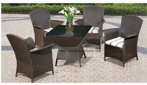 2.1.2mm Aluminum frame with high quality powder coated; Strengthened flat PE rattan; 320-360g UV resistant and waterproof polyester fabric; 8cm seat cushion within foam; 5mm tempered glass top