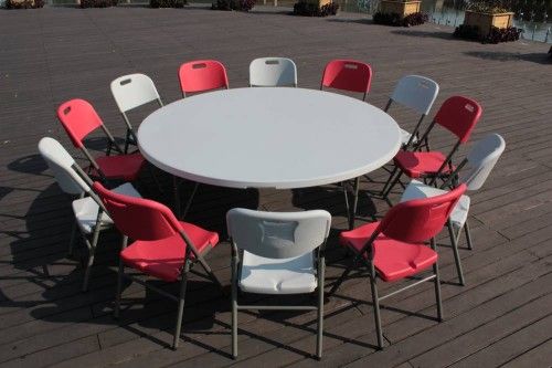 1. Item Name: 72''*30'' blow-molded plastic banquet round folding table 2. Item No: SY-183ZY 3. Color: Granite White 4. Material: Green environmental HDPE and Power-coated steel tube 5. Unfolding Size: Dia183*74cm(Dia72''*H30'') 6. Folding Size: L 183*W91.5*H10cm 7. Steel Tube: 28*1.0mm 8. Net Weight: 28kg 9. Gross Weight: 30KG 10. Weight Capacity: 180Kg at least 11. Inner Package: 1 Piece/ Poly bag 12. Outpackage: 1 Piece/ Carton Feature: 1. Fashion design, green environmental and recycled material HDPE, very popular in home and abroad. 2. Durable construction quality. 5cm thick granite white blow molded polyethelyne plastic table top, Steel tube legs. 3. Lighteweight, easy to move and store. 4. Water proof, resist acid, alkali and high temperature. Very long service life for at least 5 years. 5. Can apply to many field for indoor, outdoor, commercial and entertainment use, such as home, office, restaurant, hotel, church, party, wedding and so on. Terms of Transaction 1. MOQ: 150 Sets 2. Lead Time: 15-20Days 3. Terms of Delivery: FOB Shanghai/ Ningbo; CIF 4. Terms of Payment: TT; L/C at Sight 5. Inspection: Full Inspection and Random Inspection 6. Packing: Each Set with One Poly Bag inside and One Carton Outside