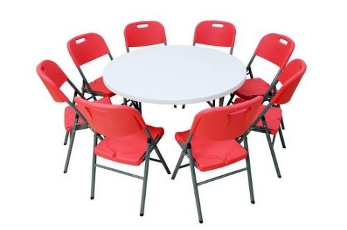 1. Item Name: 5 foot banquet round folding table 2. Item No: SY-122Y 3. Color: Granite White 4. Material: Green environmental HDPE and Powder-coated steel tube 5. Unfolding Size: Dia122*74cm 6. Folding Size: L122*W122*H5cm 7. Steel Tube: 28*1.0mm 8. Net Weight: 11kg 9. Gross Weight: 13KG 10. Weight Capacity: 180Kg at least 11. Inner Package: 1 Piece/ Poly bag 12. Outpackage: 1 Piece/ Carton Feature: 1. Fashion design, green environmental and recycled material HDPE, very popular in home and abroad. 2. Durable construction quality. 6.6 cm thick granite white blow molded polyethelyne plastic table top, Steel tube legs. 3. Lighteweight, easy to move and store. 4. Water proof, resist acid, alkali and high temperature. Very long service life for at least 5 years. 5. Can apply to many field for indoor, outdoor, commercial and entertainment use, such as home, office, restaurant, hotel, church, party, wedding and so on. Terms of Transaction MOQ: 250 PCS Lead Time: 15-20Days Terms of Delivery: FOB Shanghai/ Ningbo; CIF Terms of Payment: TT; L/C at Sight Inspection: Full Inspection and Random Inspection Packing: Each Set with One Poly Bag inside and One Carton Outside