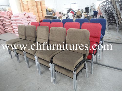 We are manufactuer. All of the chairs are made by ourselves. We have produced chairs for 8 years. We have advanced equipment, mature technology and experienced workers to ensure good quality chairs. We will export at least 8*40HQ Container chairs every month. We Supply Blue Church Chair, Stacking Church Chair, Banquet Chair, Hotel Chair, Metal Chair, Auditorium Chair, Cinema Chair, Theater Chair, Auditorium Furniture, Church Furniture, Steel Chair. *** Our Advantage *** 1. Nice design, 2. Professional handwork, Insure you the quality. 3. A lot of fabric and leather color for choosing. Then match your place. 4. Excellent package to avoid the damage in the ocean. 5. Bookrack under the seat cushion and a pocket at the back for Bibles are availabale ***Steel Church Chair Description*** *Model No: YC-G51 *Item name: Stackable Steel Church Chair *Spec: 480W*500D*880H mm *Material: 1)25*25*1.5mm steel tube with paint coating finish. 2)Comfortable seat with high density sponge(65kg/m3) 3)Stackable design to save space and freight for you. 4)We have lots of farbic and leather in color and design for your choosing. And can be made fireproof according to UK(BS5852)or US(CA117)standard. 5)We use high quality stacking plastic studs and foot plugs. It's very durable. 6)Bookrack under the seat cushion and a pocket at the back for Bibles are availabale *Packing: Bubble bag packing the backrest and chair leg first, Then packing by plastic bag to avoid the hit. Stackable design to save space and shipping costs. Carton package is available. 13PCS/stack *Loading: 20GP: 333 PCS 40GP: 650 PCS 40HQ: 760PCS