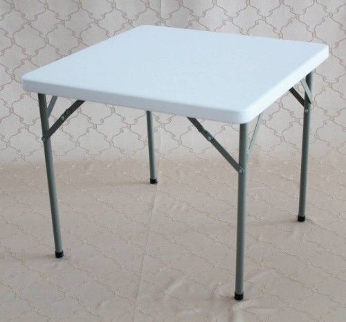 *Item Name: Square Folding Table *Item No: SY-87F *Color: Granite White *Material: Green environmental HDPE and Powder-coated steel tube *Unfolding Size: L 87*W87*74cm *Folding Size: L 87*W87*5cm *Steel Tube: 28*1.0mm *Net Weight: 10Kg *Gross Weight: 11KG *Weight Capacity: 180Kg at least *Inner Package: 1 Piece/ Poly bag *Outpackage: 1 Piece/ Carton Terms of Transaction *MOQ: 200 pieces *Lead Time: 20-25Days *Terms of Delivery: FOB Shanghai/ Ningbo; CIF *Terms of Payment: TT; L/C at Sight *Inspection: Full Inspection and Random Inspection *Packing: Each Set with One Poly Bag inside and One Carton Outside