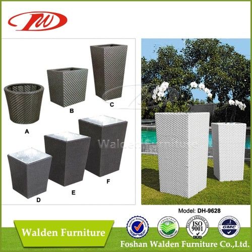 Specifications Rattan home furniture 1)top grade 100% new rattan (SGS approved) 2)hand weaving, customized order 3)ship within 15days Rattan Flower Pot (DH-9628) Material: 1) Rattan, the rattan we use for our product is only the highest quality man-made fiber. Called PE rattan, this kind of rattan is UV resistant and waterproof, and our rattan is through dyed, you can fix it by applying heat when it get scratches, it last long time and the color never fade away, also it is not sensitive to temperature fluctuations. 2) Cushion, the fabric and sponge inside the cushions, they are all water proof, the sponge we use for our products is of high density which ensures the durability, but usually, others just use 20 density which is bad. 3)Frame, other manufacturers construct the frame with 1.0mm thick aluminum, but all our products are constructed with 1.2, 1.5and 1.8mm thick tube, which make it strong enough, we make it powder coated, this way the frame is fully protected against corrosion and becomes virtually invisible once it has been woven over, some suppliers never do that to reduce the cost. Features: 1: Green Product, UV-Resistant, Weatherproof and colorfast. 2: Excellent Handweaving Technique with fashion design. 3: Perfect for casual dining and entertaining indoor or outside. 4: High Quality with competitive price and timely delivery. Package: Carton package and flexible package. Warranty: We offer three-five year warranty. Product series: 1, Chair series: Patio chair, beach chair, folding chair, stackable chair, wicker chair, Rattan chair, wooden chair, caff chair, coffee chair, Leisure chair, garden chair, Armchair, reclining chair etc, 2. Table series: Wooden table, rattan table, coffee table, wicker table, Garden table, patio table, dining table, picnic table, tea table, BBQ table etc 3, Sofa Series: Outdoor sofa, indoor sofa, rattan sofa, wicker sofa, compound sofa, combination sofa, single sofa, love seat, corner sofa, leisure sofa, sofa bed, round sofa ect. Quality first, Clients foremost, Welcome to contact us with any of your questions