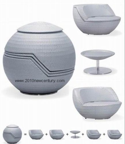 Outdoor Furniture/Patio Furniture Table and Chairs 1. Steady aluminum frame with powder- coated 2. All weather PE wicker/rattan with nice weaving 3. Rattan: PE rattan /wicker, water proof, can be exposed in all weather, UV-resistant-SGS test 4. Frame: Steady, strong and light weight with good powder coated, never rust 5. Color of the wicker and size of sofa are optional, customers design and require are welcome 6. Cushion: Water proof cover, easily remove for washing, high density foam inside 7. Suitable for indoor and outdoor place 2*big chairs: W108*D106*H63cm 2*small chairs: W91*D89*H55cm 1* table: Dia 65*H37cm