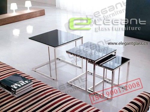 Coffee Table (CA125) 1. 10mm tempered glass with black painting 2. Stainless steel pipe 3. CBM: 0.27m³³sup3;³ 4. Packing: Carton + wooden case PRODUCTS ADVANTAGE: A: Competitive price 1. We have our owner professional team for material market research that to choose best price and high quality. 2. All products design by ourselves. We have the advanced equipment(Tempered Machine, Hot-bending Furnace, Glass Edging Machine etc...) and hing production technology, from raw material to finished products manufactured by ourselves. B: High Quality: 1. All products had pass ISO9001: 2008 Certificate. 2. We have our owen meticulous Quality Control System and professional Quality Inspector. 3. Our products are hot sell in European(Such as Germany, Franch, England, Australia, USA, Italy etc^)and Middle East; Also we are the supplier for several famous furniture company all over the world. C: Warranty 1. All products had reach International Export Standard. 2. We give credit for glass broken when you find after the container had arrive. D: Supply Capacity Our company have more than 6 years' experience in manufacturing glass furniture. We have more than 160 skilled workers and a team of engineers, advanced production lines and a factory with more than 15, 000 square meters. Our output capacity reach 300 containers annually. E: We afford OEM service, afford different specification as per clents' requirements.