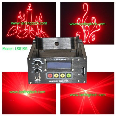 Mini animation laser stage light SD card - LS819R Description 100mW Red SD Animation laser Light Feature Red animation laser with high-speed optical scanner to create animated graphics, 256 beam show and graphics show patterns. SD Card supports '. Ild' format picture which shows customize animations. All functions are shown through LCD indicator. The scanning speed of the animations from SD card can be set manually. Animations in SD card can be selected and displayed permanently or replayed times.layed times. Scanner 10kpss High-speed optical scanner, big angle scanning (0 to 30° )eg; )eg; ) Laser Red: 100mW 650nm Play Mode (1) Laser: Sound Active, AUTO-Beam, AUTO-Animation, (2) SD card: Program Table, Audio Mode, Auto Mode. PC Control Not available Safety Capacity Design according to security and good performance, safer to human and environment. Master/Slave mode, will shut off laser automatically without trigger signal Power Supply Bi-Voltage 110V to 220V-250V, 50/60Hz, 10W Net Weight 1.2Kg Gross Weight 1.7Kg (inner box), kg (outer box) Volume Weight 2.3Kg (/5000) or 1.9Kg(/6000), inner box 19Kg (/5000) or 15.9Kg(/6000), outer box Inner Box 230*229*155(0.008m³ )sup3; )up3; ) Outer Box 480*478*353(0.081m³ ), 8PCS/cartoncartoncarton Accessories Included: User' s Manual Power Supply Cable (UK, USA, EURO, AUS, BRZ, etc). Applicable Place Logo, company advertising, superstar fashion show, DJs, Bands, Bars, Pubs, Clubs, Roller skating rinks, KTV, Family party, etc. Customized OEM, ODM