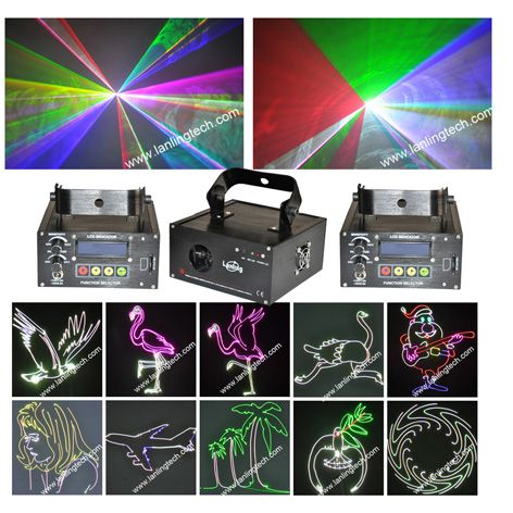 RGB full laser light show system SD Card LS888RGB 230mw RGB laser, 100mw red laser, 30mw green laser, 100mw blue laser SD card interface, LCD indicator Auto-beam, auto-animation projector, sound active Built-in 128/256 patterns Weight: 2.5KGS For: DJ disco club stage lighting