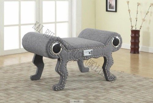 音乐存储多功能现代织物无背长椅与蓝色牙齿