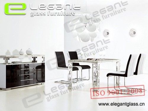 Dining Table (DA605) 1. 20mm Marble 2. Chrome Stainless Steel 3. CBM: 0.25m³ .up3; .up3; . 4. Packing: Carton + wooden case. We provide home furniture, glass furniture, coffee tables, shelf, TV tables, dining tables and business tables. PRODUCTS ADVANTAGE: A: Competitive price 1. We have our owner professional team for material market research that to choose best price and high quality. 2. All products design by ourselves. We have the advanced equipment(Tempered Machine, Hot-bending Furnace, Glass Edging Machine etc...) and hing production technology, from raw material to finished products manufactured by ourselves. B: High Quality: 1. All products had pass ISO9001: 2008 Certificate. 2. We have our owen meticulous Quality Control System and professional Quality Inspector. 3. Our products are hot sell in European(Such as Germany, Franch, England, Australia, USA, Italy etc^)and Middle East; Also we are the supplier for several famous furniture company all over the world. C: Warranty 1. All products had reach International Export Standard. 2. We give credit for glass broken when you find after the container had arrive. D: Supply Capacity Our company have more than 6 years' experience in manufacturing glass furniture. We have more than 160 skilled workers and a team of engineers, advanced production lines and a factory with more than 15, 000 square meters. Our output capacity reach 300 containers annually. E: We afford OEM service, afford different specification as per clents' requirements.