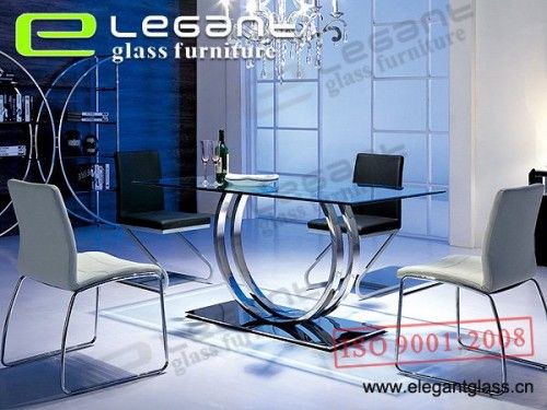 Dining Table (DA603) 1. 12mm Clear Tempred Glass 2. Chrome Stainless Steel 3. CBM: 0.25m³ .up3; .up3; . 4. Packing: Carton + wooden case. We provide home furniture, glass furniture, coffee tables, shelf, TV tables, dining tables and business tables. PRODUCTS ADVANTAGE: A: Competitive price 1. We have our owner professional team for material market research that to choose best price and high quality. 2. All products design by ourselves. We have the advanced equipment(Tempered Machine, Hot-bending Furnace, Glass Edging Machine etc...) and hing production technology, from raw material to finished products manufactured by ourselves. B: High Quality: 1. All products had pass ISO9001: 2008 Certificate. 2. We have our owen meticulous Quality Control System and professional Quality Inspector. 3. Our products are hot sell in European(Such as Germany, Franch, England, Australia, USA, Italy etc^)and Middle East; Also we are the supplier for several famous furniture company all over the world. C: Warranty 1. All products had reach International Export Standard. 2. We give credit for glass broken when you find after the container had arrive. D: Supply Capacity Our company have more than 6 years' experience in manufacturing glass furniture. We have more than 160 skilled workers and a team of engineers, advanced production lines and a factory with more than 15, 000 square meters. Our output capacity reach 300 containers annually. E: We afford OEM service, afford different specification as per clents' requirements.