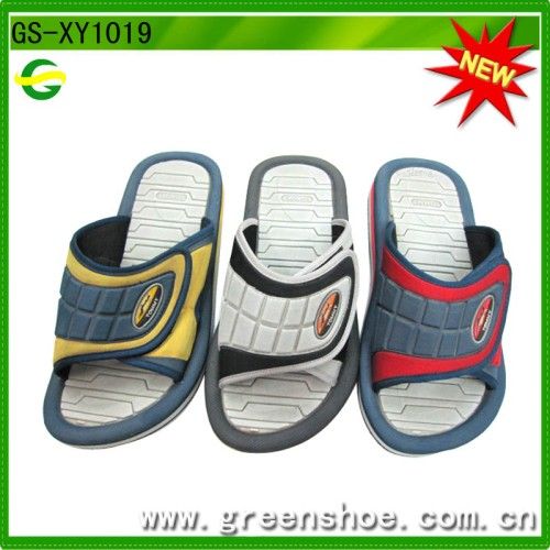 Latest fashion design slipper sandal Shoes description 1. Item nameGS-XY1019 new design slippers 2. Upper: Synthetic 3. Outsole: EVA 4. Inner packing: 1 pair per polybag 5. Outer packing: 24 or 48 pairs/carton or as customer's request 6. Sample charge: US$100(can return back when place order) 7. Sample time: About 10-15days after sample fee received 8. Delivery time: 45-55 days after sample approved (depends on final order) 9. Price term: FOB XiaMen 10. Payment term: T/T, L/C 11. Shipping FCL: (Full Container Load) or LCL(less-than-carload lot) By sea If there are any item interest to you, please don't hesitate to contact us. TKS~ About us We are making great efforts to be your eva slipper manufacturer, man sandals factory, men shoes manufacturer, men shoes wholesale, China shoes manufacturer, shoes manufacturer, men shoes factory, shoes supplier etc. WE HAVE A MORE THAN 5000 PCS OF SAMPLES SHOWROOM IN Jinjiang, Fujian. WELCOME TO VISIT US IF YOU COME TO CHINA!