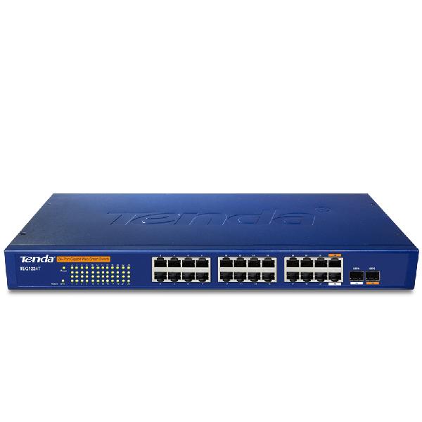 腾达TEG1224T 24端口智能交换机| 24端口10/100/1000 + 2共享迷你GBIC端口千兆智能交换机