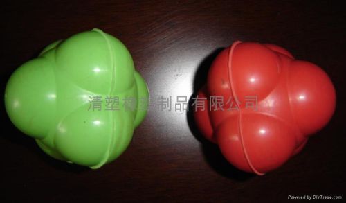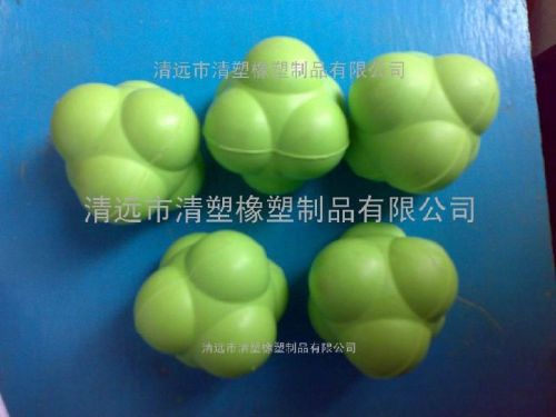 橡胶反应球. 材质: 天然橡胶 规格: 直径6.7厘米, 156G. 实心. 颜色: 常规颜色红色, 黄色, 青色 (颜色可以按样品或是色卡定做) ,也可以按图纸, 样品开模生产. 反弹力很强. (以上价格为小球价格)