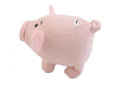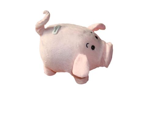 Walking piggy bank, it will walk when dropping a coin into the coin hole and stop by pressing the button near the coin hole-it can make pig sound and shake nose.