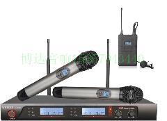 双接收真分集电路, PLL 双频道锁相环回路设计, 独特智能ID识别技术, 可以多支分布使用. 数字模拟混合传输, 音频无数字传输延时缺点, UHF1200频点PLL数位锁定自动选讯功能. 红外对频设计, LCD蓝色静态液晶显示幕, 微处理器控制, 有效避免接收死角情形发生. 麦克风防摔设计.
