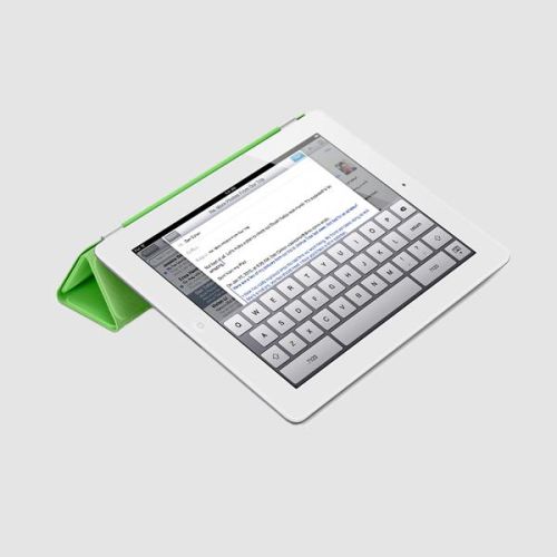The Smart Cover does double duty as a keyboard stand. Fold it back to tilt iPad into a comfortable writing position.