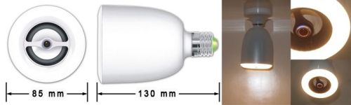 This LED lighting with Bluetooth audio combines LED energy-saving lighting and sound technology together. The outer ring is the ring luminescence band, which can brighten the light of warm white or cool white. A small-caliber and high-powered full-range speaker is located in the middle area, and music player rise well. Bluetooth audio receiver is suitable for all kinds of products with Bluetooth, such as mobile phone, MID, notebook etc.