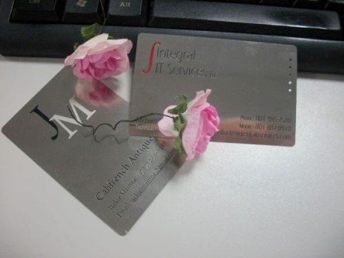 不锈钢卡规格: 常用有三种, 85mm*54mm, 80mm*50mm, 76mm*44mm, 也可根据客户要求制作其它形状大小的异形卡片. 厚度: 常用的厚度是0.35mm, 也可做0.25mm, 0.30mm, 0.40mm等. 也可以根绝客户定制.