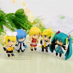 5PCS Cute Anime Cartoon Style Hatsune Miku Figure Toy with Base