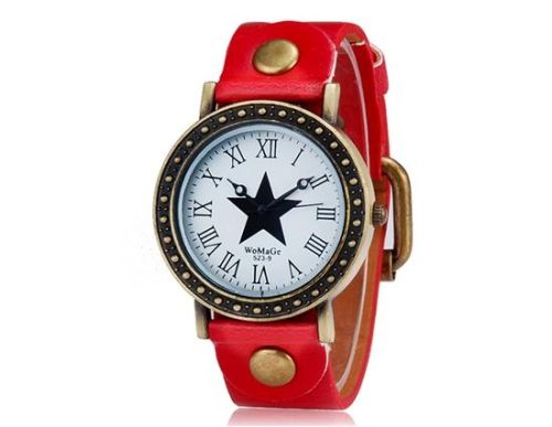 WOMAGE 523-9女明星打印的圆形表盘模拟手表(红色) M.