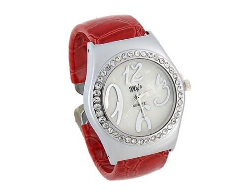 圆形表盘钢剥皮乐队女腕表表带(红色) M.