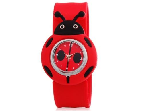 儿童可爱的甲壳虫设计手表与塑胶表带(红色) M.
