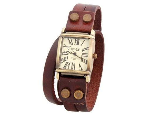 妇女的方形表盘石英电子手表B001 (布朗) M.