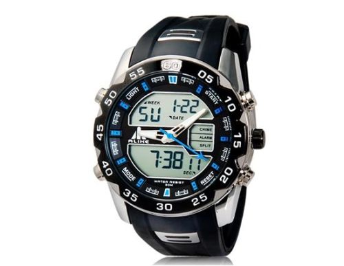 AL113圆形表盘模拟和数字显示防水潜水表与[35]运动,合金表壳,TPU橡胶表带和背光(蓝色)M.
