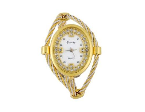 椭圆形表盘钢带手表女士(金色和白色) M.