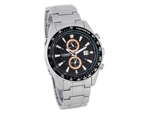 CURREN不锈钢模拟手表与日历(黑色) M.