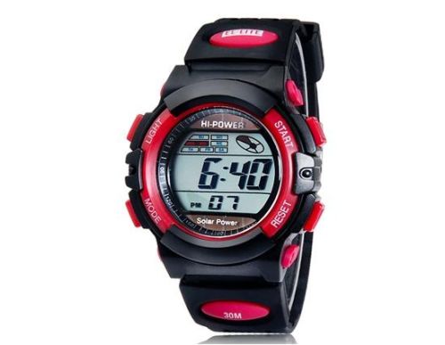 RE901圆形表盘数字显示防水太阳能潜水运动手表与太阳能机芯,塑料外壳,TPU橡胶表带和背光(红色)M.