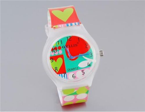 | Round dial analog quartz watch Colorful heart pattern High quality quartz movement Comfortable plastic watch strap | |
